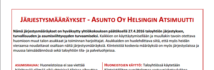 Atsimuutin järjestysmääräykset on hyväksytty yksimielisesti ylimääräisessä yhtiökokouksessa 27.4.2016.
